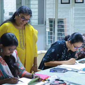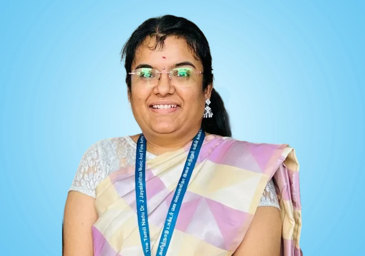 Mrs. Alagammai Karthik is a talented artist with a vibrant energy that translates beautifully onto her canvases. After pursuing a Bachelor of Computer Applications (BCA), she boldly followed her true passion and earned a Bachelor of Fine Arts (BFA) specializing in Painting. Further, she has honed her skills further by pursuing a Master of Fine Arts (MFA) at The Tamil Nadu Dr. J. Jayalalitha Fine Arts & Music University.